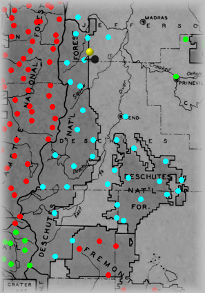 The Yellow "pin" signifies where this site is within the forest. Click on Aqua dots above to visit other sites in this forest. Click on other colors for sites in adjacent forests. |